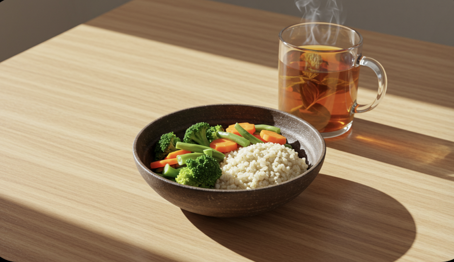- 현미·통곡물: 소화기능 개선, 위산 분비 완화